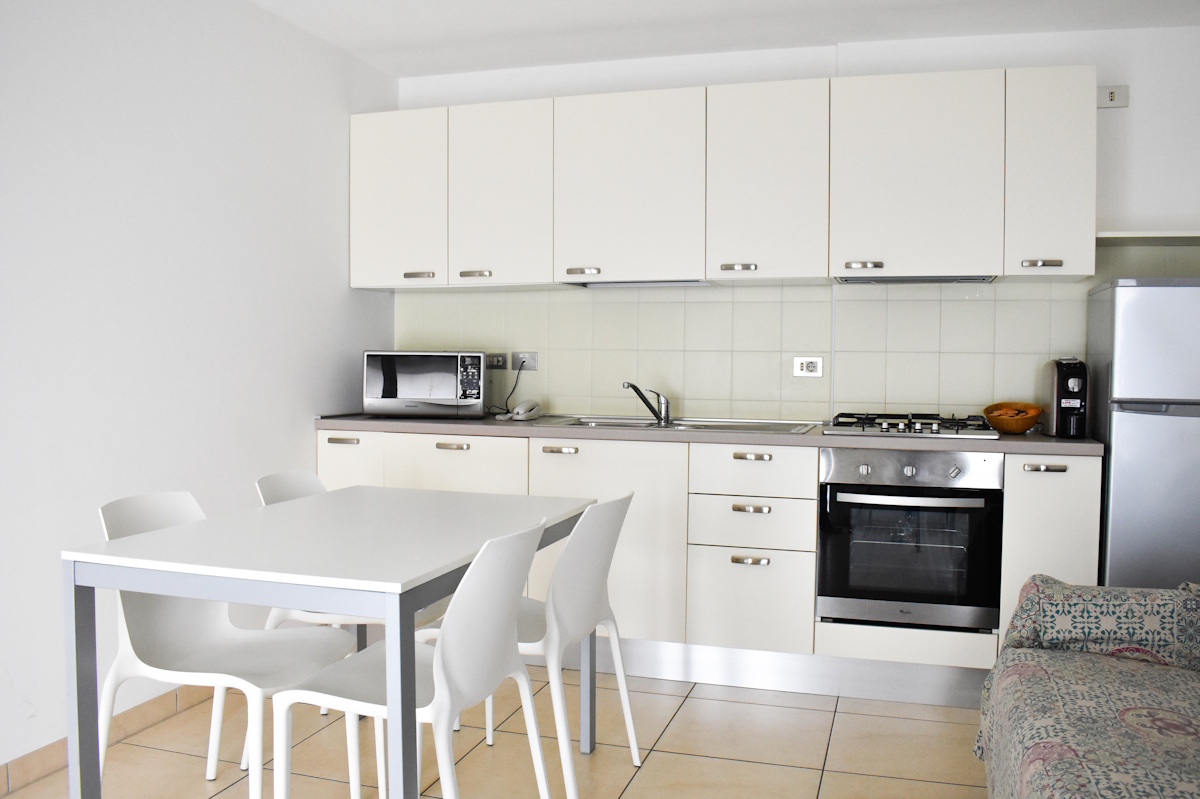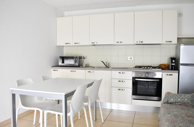 Bilocale di Mq. 45, con 4-6 posti letto composto da camera matrimoniale con 3°-4° letto, e divano letto matrimoniale nel soggiorno/sala da pranzo , situati al 1° e 2° piano dell’edificio.
